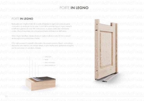 Ante in legno lamellare, dotate di serie di soglia in alluminio alta 20 mm o versioni