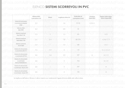 ELENCO SISTEMI SCORREVOLI IN PVC