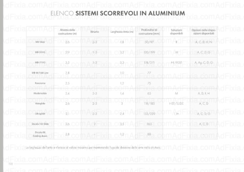 ELENCO SISTEMI SCORREVOLI IN ALUMINIUM