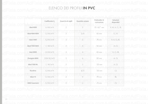 Coefficente U f Quantità di sigilli Quantità camere Profondita’ di disponibili