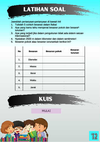 1. Tulislah 5 contoh besaran dalam fisika!