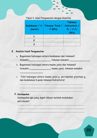 Tabel 3. Hasil Pengamatan dengan Gasoline