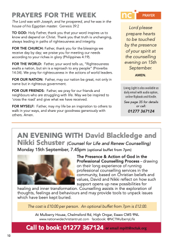 Lord please prepare hearts to be touched by the presence of your spirit at the counselling evening on 15th September.