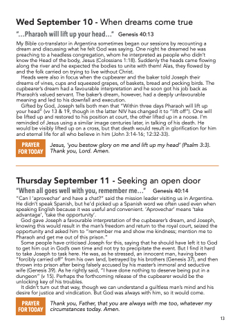 Wed September 10 - When dreams come true “...Pharaoh will lift up your head...” Genesis 40:13