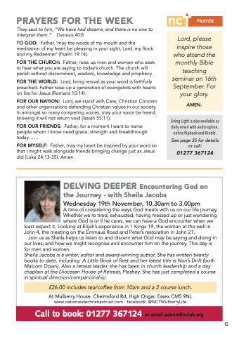 Lord, please inspire those who attend the monthly Bible teaching seminar on 16th September. For your glory.