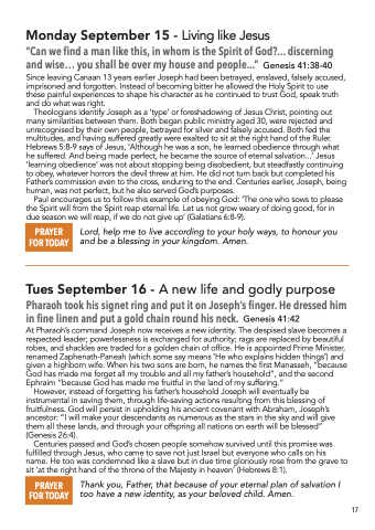 Tues September 16 - A new life and godly purpose Pharaoh took his signet ring and put it on Joseph’s finger. He dressed him