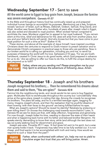 Thursday September 18 - Joseph and his brothers Joseph recognised his brothers;... Then he remembered his dreams about