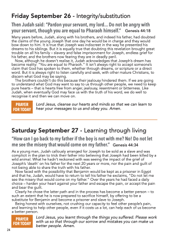 Now, although he doesn’t realise it, Judah acknowledges that Joseph’s dream has become reality: “You are equal to Pharaoh.” It isn’t always right to accept someone’s claim that God has spoken to them, whether through dreams, or scripture or a direct word. But it is always right to listen carefully and seek, with other mature Christians, to discern what God may be saying.