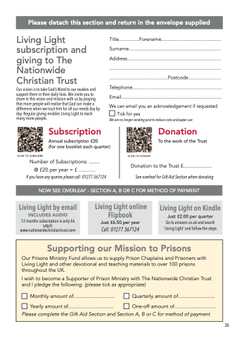 Our vision is to take God’s Word to our readers and support them in their daily lives. We invite you to share in this vision and mission with us by praying that more people will realise that God can make a difference when we trust him for all our needs day by day. Regular giving enables Living Light to reach many more people.