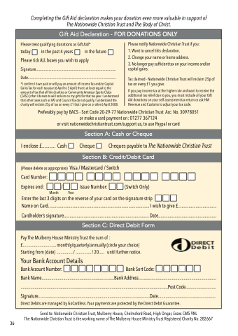 Completing the Gift Aid declaration makes your donation even more valuable in support of The Nationwide Christian Trust and The Body of Christ.