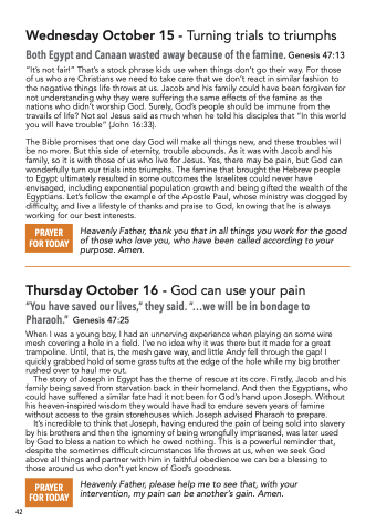 Wednesday October 15 - Turning trials to triumphs Both Egypt and Canaan wasted away because of the famine. Genesis 47:13
