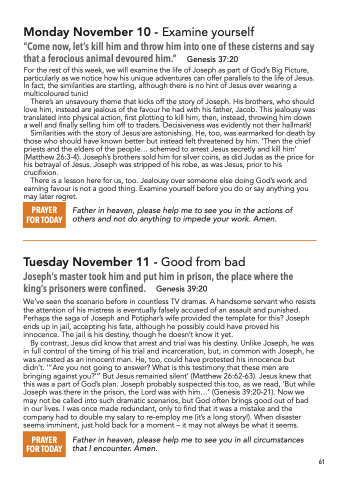 For the rest of this week, we will examine the life of Joseph as part of God’s Big Picture, particularly as we notice how his unique adventures can offer parallels to the life of Jesus. In fact, the similarities are startling, although there is no hint of Jesus ever wearing a multicoloured tunic!