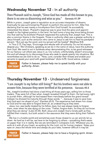 Jesus, too, was badly treated by his fellow Jews, but was always ready to forgive them, even when he was dying on the cross: “Father, forgive them, for they do not know what they are doing” (Luke 23:34). Both Jesus and Joseph trod a lonely path as they fulfilled their mission, but both acted in the assurance that they were doing their Father’s will.