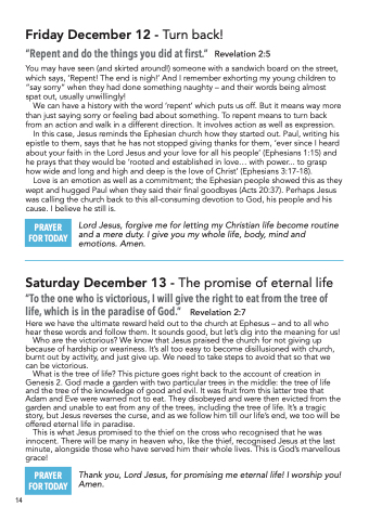Saturday December 13 - The promise of eternal life “To the one who is victorious, I will give the right to eat from the tree of