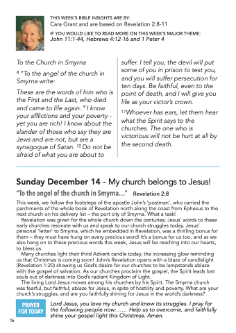 Sunday December 14 - My church belongs to Jesus! “To the angel of the church in Smyrna...” Revelation 2:8