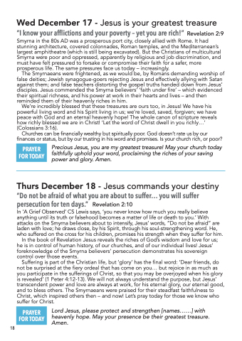 Wed December 17 - Jesus is your greatest treasure “I know your afflictions and your poverty – yet you are rich!” Revelation 2:9