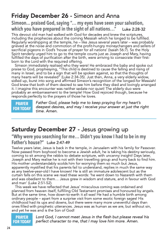 This devout old man had walked with God for decades and knew the scriptures, including the prophecies about the coming Messiah which he longed to be fulfilled. Regularly worshipping at the temple, he – like Jesus several years later – was probably grieved at the noise and commotion of the profit-hungry moneychangers and sellers of sacrificial pigeons in God’s ‘house of prayer for all nations’ (Isaiah 56:7). So the Holy Spirit tenderly urged him to go to the temple courts just as Joseph and Mary, having fulfilled the days of purification after the birth, were arriving to consecrate their first- born to the Lord with the required offering.