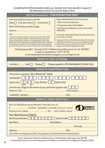 Completing the Gift Aid declaration makes your donation even more valuable in support of The Nationwide Christian Trust and The Body of Christ.