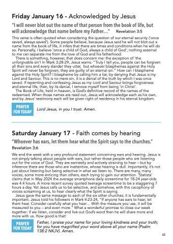 This verse is often quoted when considering the question of our eternal security (‘once saved, always saved’). Some people believe, because Jesus said he will not blot out a name from the book of life, it infers that there are times and conditions when he will do so. Personally, I believe ‘once a child of God, always a child of God’; nothing external to me can separate me from the love of God and his fatherhood.