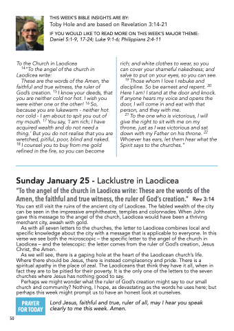 Sunday January 25 - Lacklustre in Laodicea