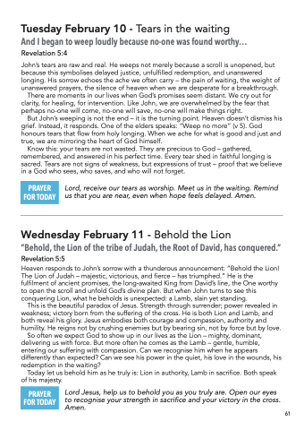 But John’s weeping is not the end – it is the turning point. Heaven doesn’t dismiss his grief. Instead, it responds. One of the elders speaks: “Weep no more” (v 5). God honours tears that flow from holy longing. When we ache for what is good and just and true, we are mirroring the heart of God himself.