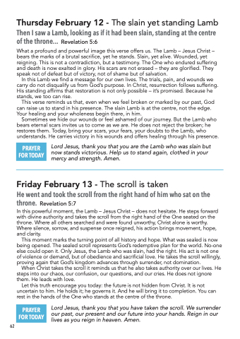 Thursday February 12 - The slain yet standing Lamb