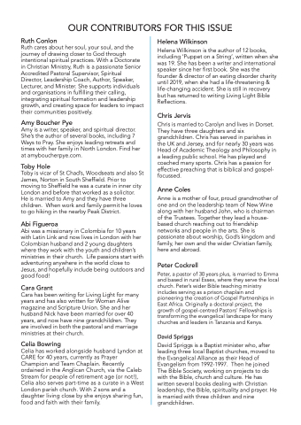 Cara has been writing for Living Light for many years and has also written for Woman Alive magazine and Scripture Union. She and her husband Nick have been married for over 40 years, and now have nine grandchildren. They are involved in both the pastoral and marriage ministries at their church.