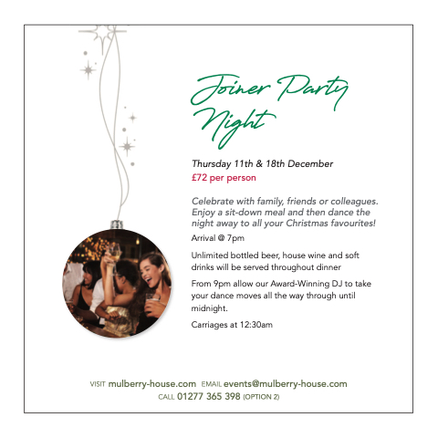 VISIT mulberry-house.com EMAIL events@mulberry-house.com CALL 01277 365 398 (OPTION 2)