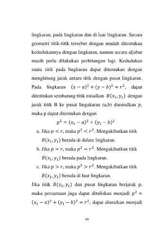 Jika titik ( , ) dan pusat lingkaran berjarak p,