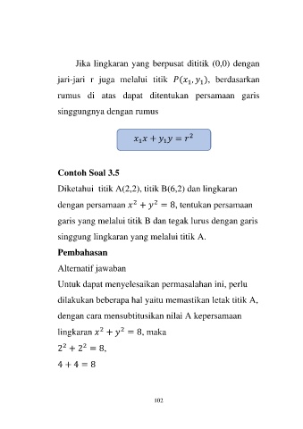 Jika lingkaran yang berpusat dititik (0,0) dengan