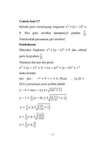Sebuah garis menyingung lingkaran + ( − 1) =