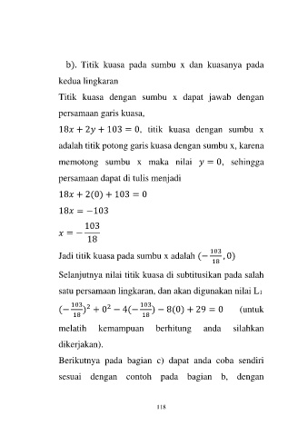 18 + 2 + 103 = 0, titik kuasa dengan sumbu x