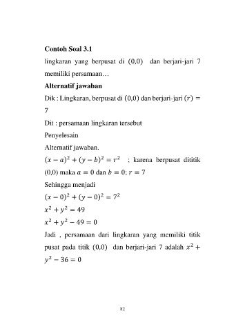 Jadi , persamaan dari lingkaran yang memiliki titik