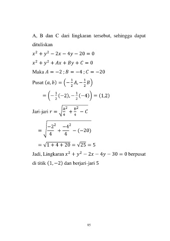 A, B dan C dari lingkaran tersebut, sehingga dapat