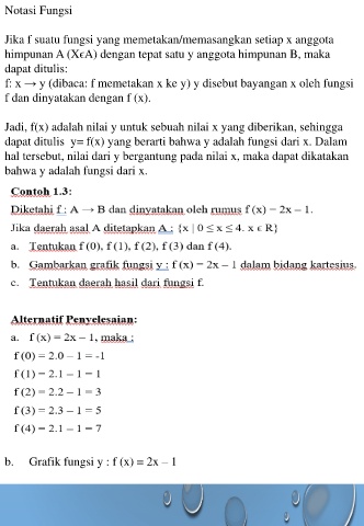 dapat ditulis y= f(x) yang berarti bahwa y adalah fungsi dari x. Dalam