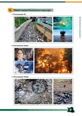 B. Macam-macam Pencemaran Lingkungan 1. Pencemaran Air PENCEMARAN LINGKUNGAN 2. Pencemaran Udara 3. Pencemaran Tanah 6 Kita tidak mewarisi bumi dari nenek moyang, tapi kita meminjamnya dari anak cucu