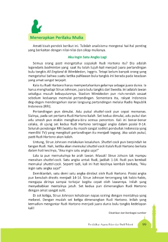 tangan Rudi. Nah, ketika akan memukul shuttel-cock itulah Rudi Hartono berkata