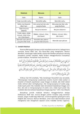 jumlah malaikat. Perhatikan hadis dari Ali ra.