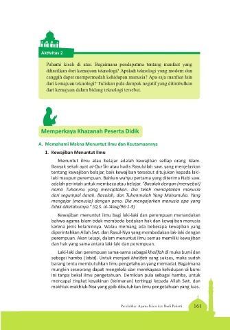 perempuan. Akan tetapi, dalam menuntut ilmu semua memiliki kewajiban