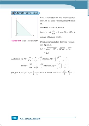 tan M = 1 ⇒ = 1 atau KL = LM = k,