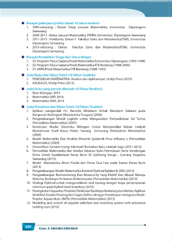 1. PEMODELAN MATEMATIKA: Analisis dan AplikasinyaI, Undip Press (2013)