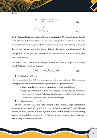 Jika V (diabaikan), atom Helium menyerupai satu sistem yang terdiri dari 2 atom hidrogen,