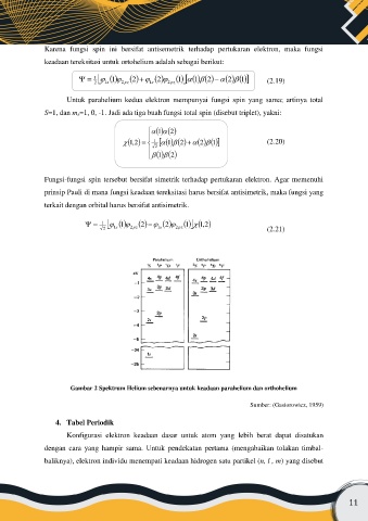 prinsip Pauli di mana fungsi keadaan tereksitasi harus bersifat antisimetrik, maka fungsi yang
