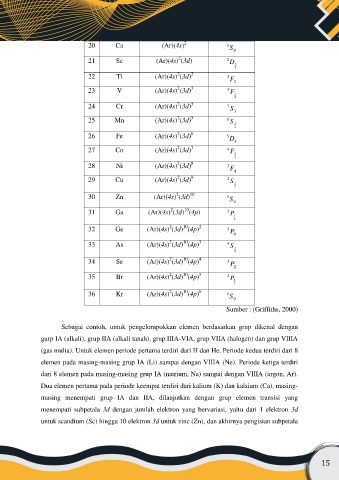 untuk scandium (Sc) hingga 10 elektron 3d untuk zinc (Zn), dan akhirnya pengisian subpetala