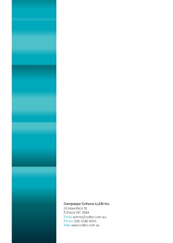 REPORT 2019 2019 Campaspe Cohuna LLEN Inc. 53 Haverfield St Echuca VIC 3564 Email admin@ccllen.com.au Phone (03) 5482 6055 Web www.ccllen.com.au