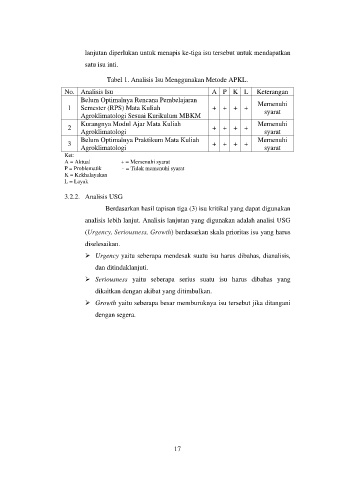 Tabel 1. Analisis Isu Menggunakan Metode APKL.