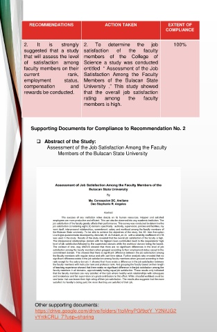 RECOMMENDATIONS ACTION TAKEN EXTENT OF