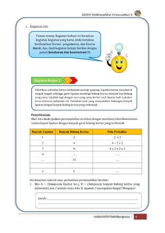 1. Jika A = {himpunan lipatan ke-}, B = {himpunan banyak bidang kertas yang