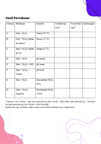 *Catatan: beri tanda + jika ada gelembung dan tanda – jika tidak ada gelembung.    Semakin