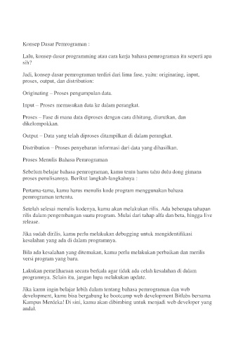 Jadi, konsep dasar pemrograman terdiri dari lima fase, yaitu: originating, input,